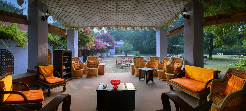 - The lodge has 13 rooms, one large heritage room, two suites, a suite and a twin-bed room in the Bougan Serai, and eight cottages in the grounds surrounding the main house. Rooms have private sit-outs overlooking the woodland and fields.