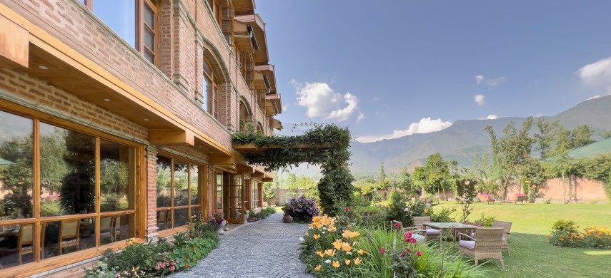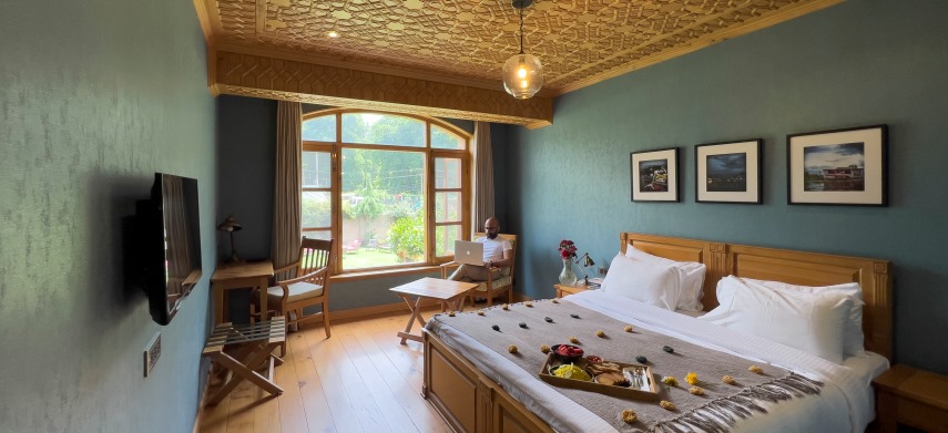 - Designed to feel like your own modern Kashmir House replete with all the necessary comforts, it has 17 rooms well equipped with all modern amenities. The cedarwood flooring, wooden panelling and simple elegant decor created with locally sourced materials are designed to use maximum natural light and bring the surrounding nature inside the rooms. Spread over an acre, only 40% of the total area has been constructed to blend in with the surrounding nature. Along with the wafting aroma of cedarwood in the rooms, there is even a real fireplace in the living room to complete the magical storybook picture.