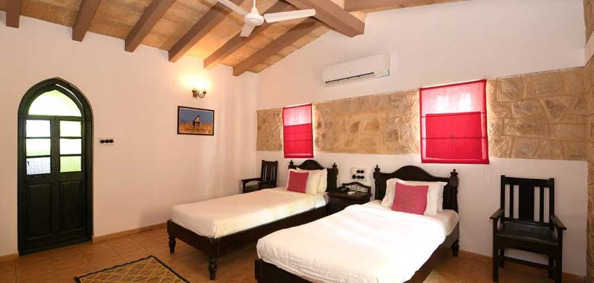 - Rann Riders’ cottages are a curious hybrid of traditional decor and modern comforts. The cottages have been designed along the lines of the kooba houses of Dasada’s Bajania community and the bhunga dwellings of Kutch’s Rabaris. Each cottage has an a/c twin-bedroom with a comfortable cane bed, mini-bar, a dry dressing area and a tiled bathroom with western-style toilet fittings and hot-and-cold showers.