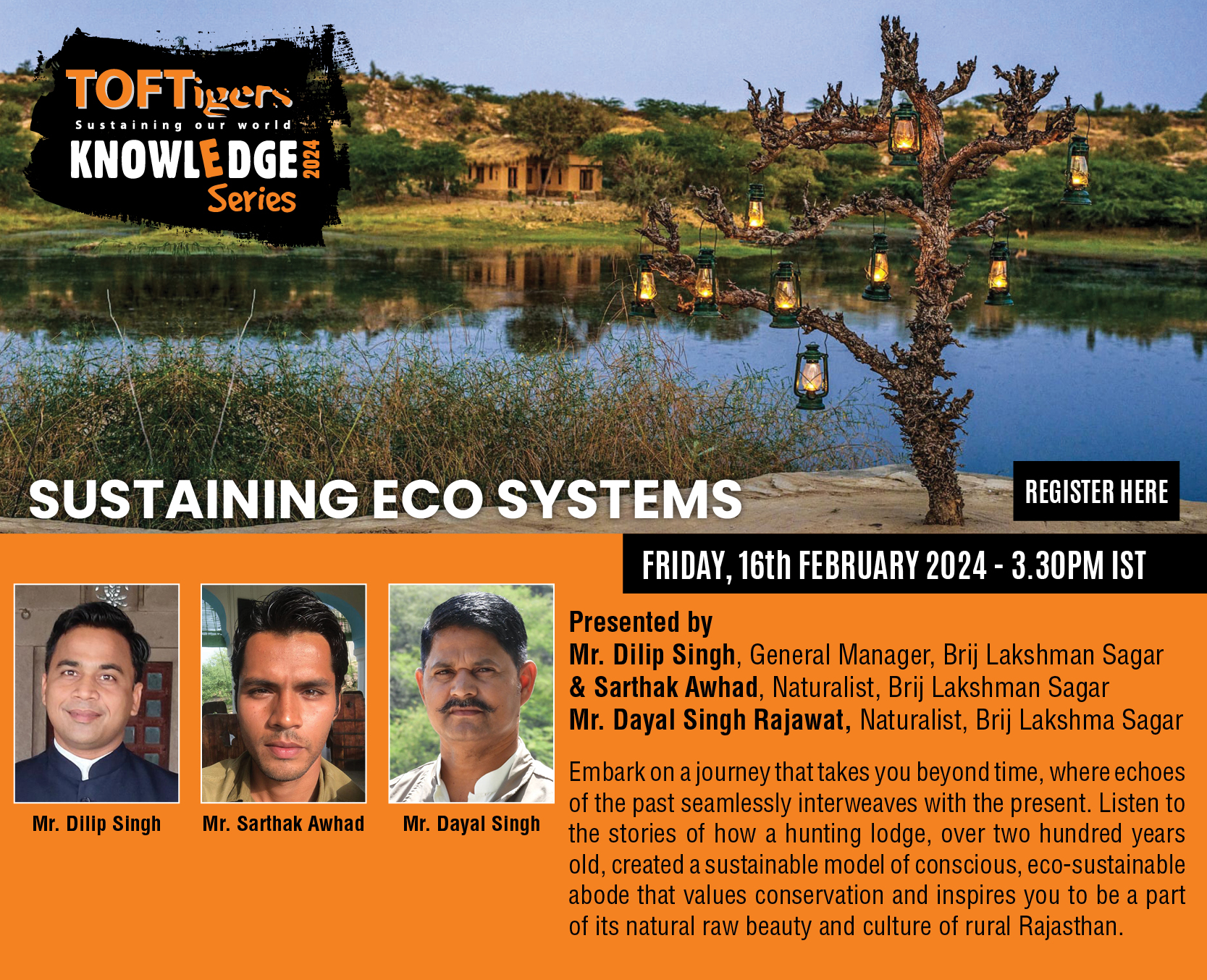 “Embark on a journey through time and tales at the TOFTigers knowledge session on ‘Sustaining Eco Systems.’ Discover the rich history of a two-century-old hunting lodge, now a beacon of conscious, eco-sustainable living. Join us as we delve into the narrative of conservation, natural beauty, and rural Rajasthan’s cultural tapestry, inviting you to be part of a sustainable future”