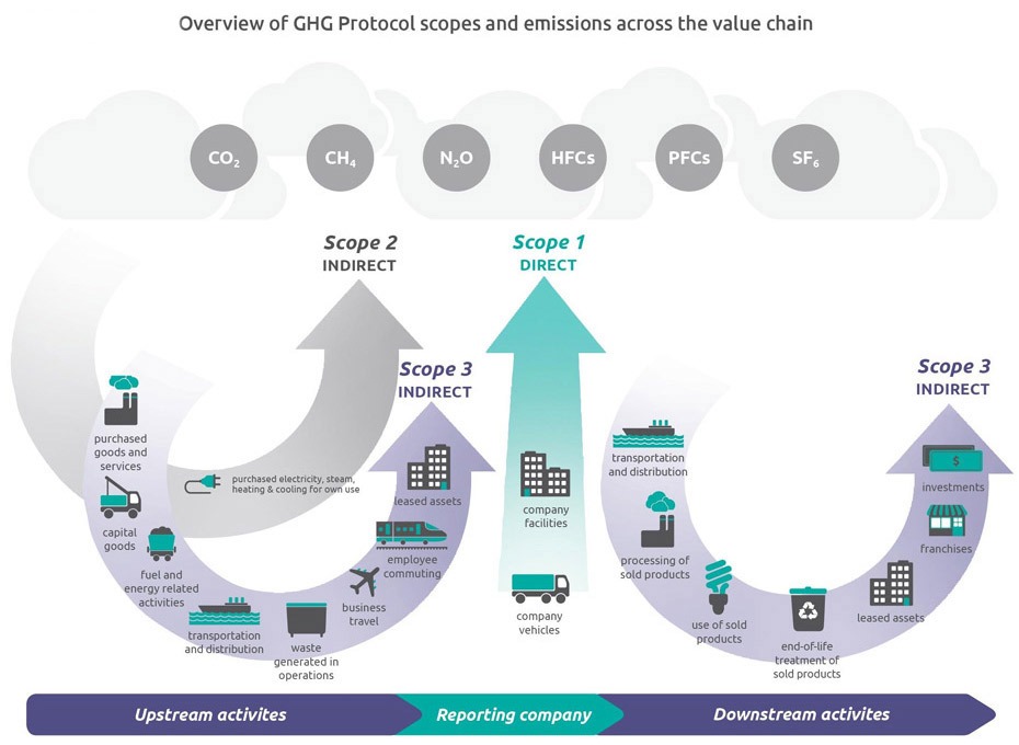 Scope 3- accounts for other indirect emissions like waste or outsourced work.